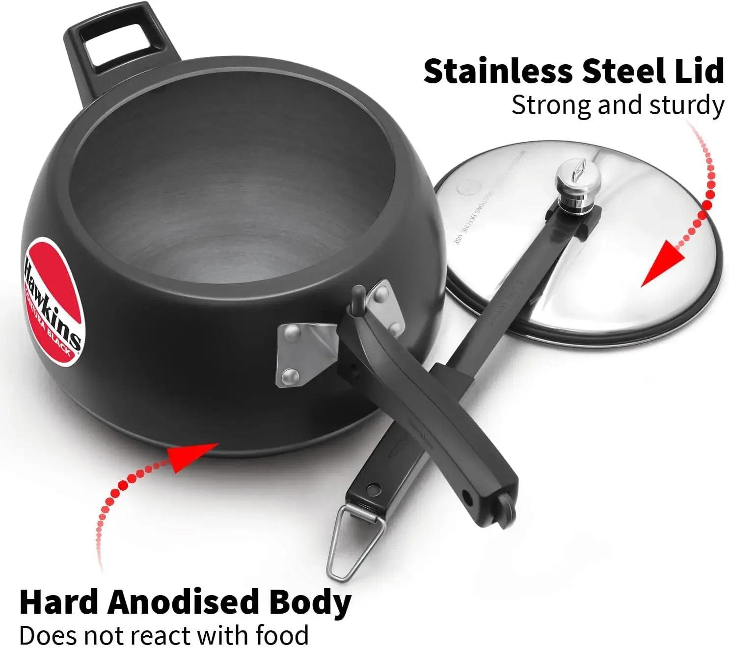 Experience the unparalleled convenience and versatility that the Pressure Cooker 6.5L Hard Anodised Efficient Cooking Easy Stirring brings to your kitchen. Enjoy nourishing meals efficiently, without compromising on taste. This pressure cooker is not just a tool; it's an essential companion for the health-conscious cook.