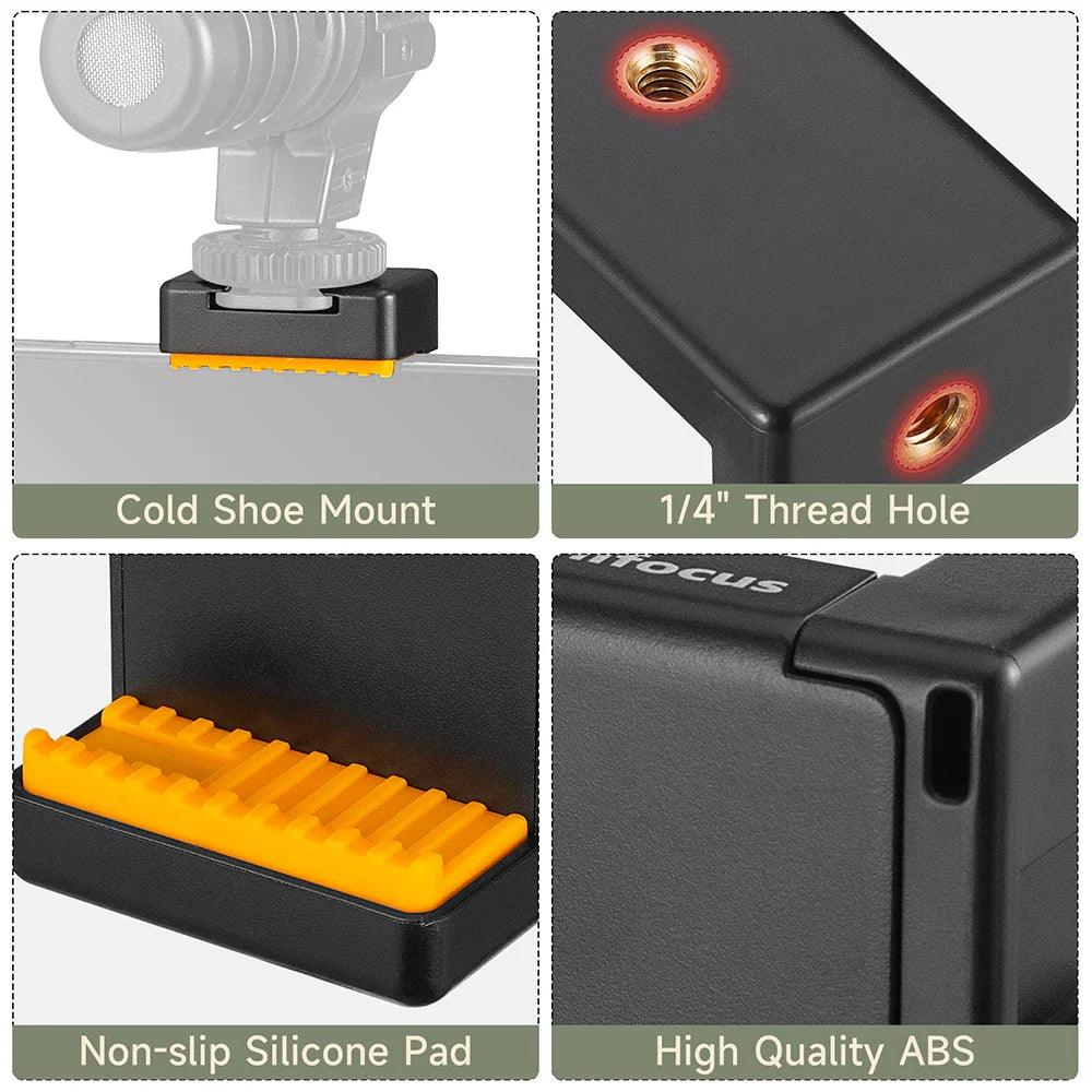 • Cold Shoe Mount: Easily attach LED video lighting and microphones for enhanced audio and visuals.
