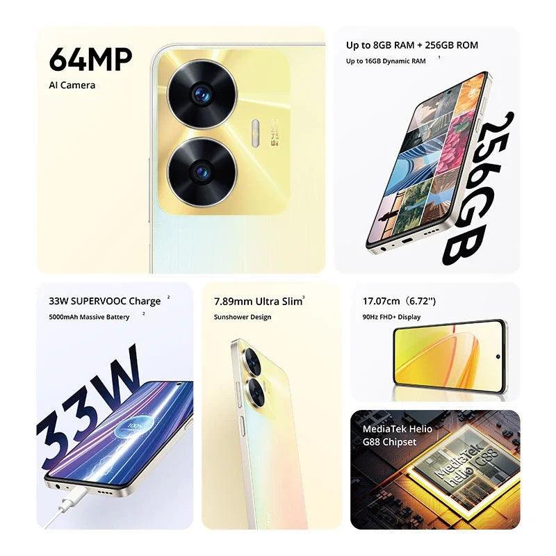 Don't miss out on this opportunity! The Realme C55 Smartphone 256GB/8GB RAM 33W Fast Charging brings you a perfect combination of style, performance, and practicality. Whether you're a gamer, content creator, or just love your digital life, this smartphone will not disappoint. Order now and transform your mobile experience!
