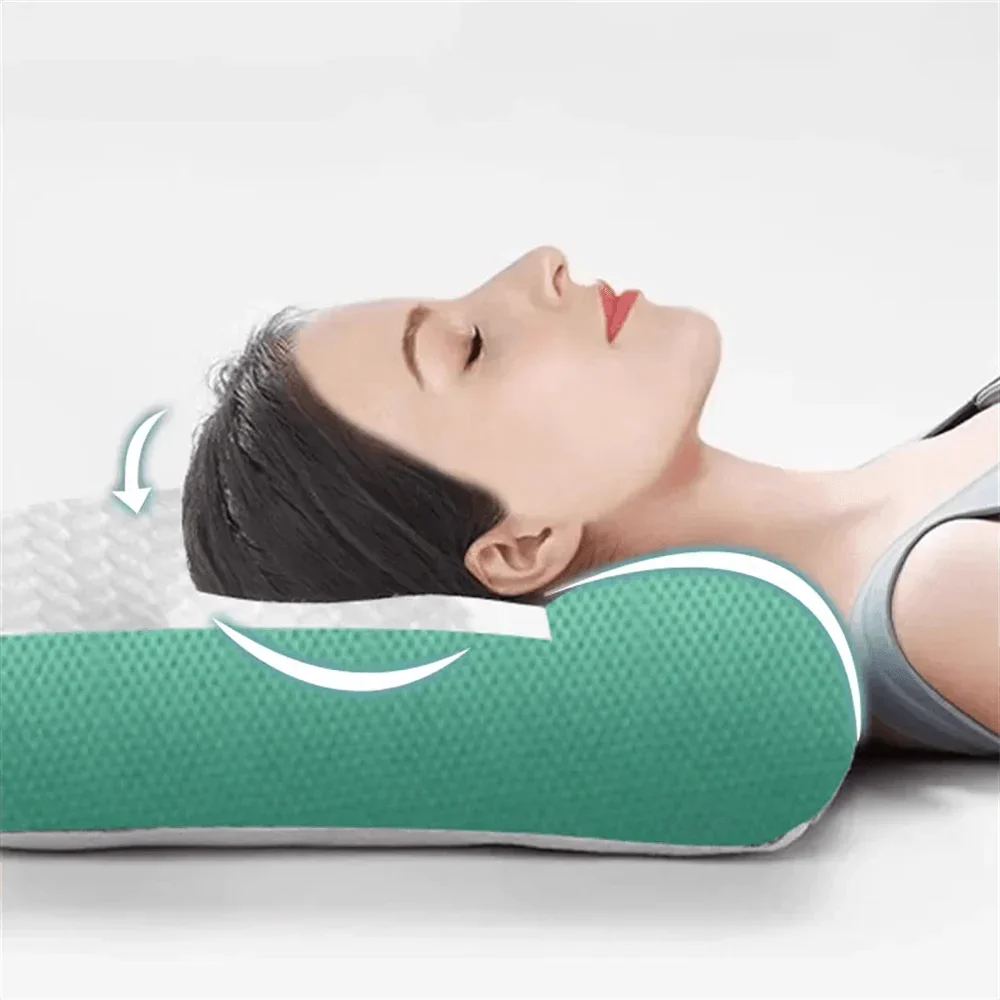 A: By combining a contoured ergonomic design with adaptive memory foam, this pillow delivers consistent neck support and spine alignment, addressing common gaps in traditional flat pillows and helping you wake refreshed.