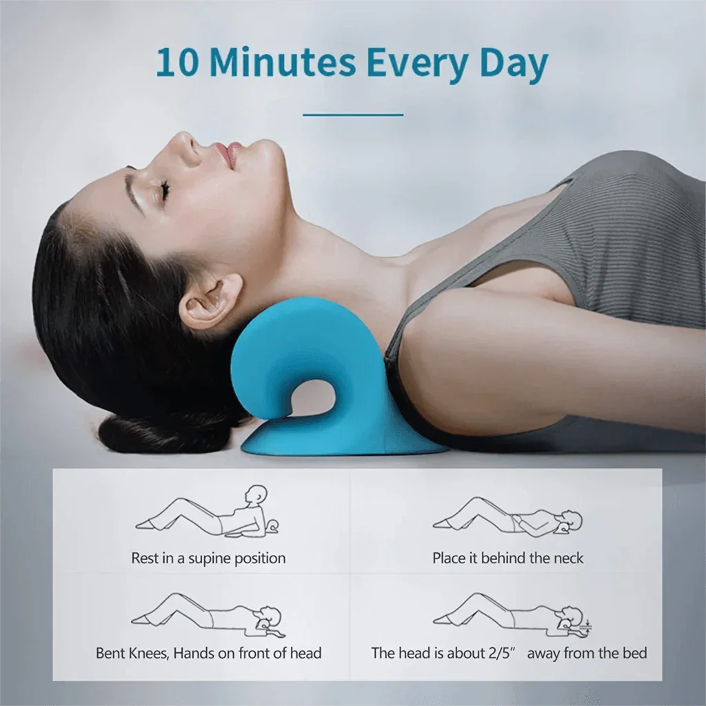 • A: Find a quiet space and relax for about 10 minutes. Position the neck support around your neck, begin with gentle traction, and adjust by tilting or bending your knees for comfort. Practice slow, deep breaths to enhance relaxation and observe improvements in posture and muscle tension.