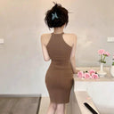 Charming Halter Sheath Skirt Elegant Open Slit Design