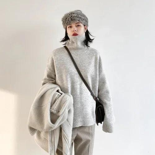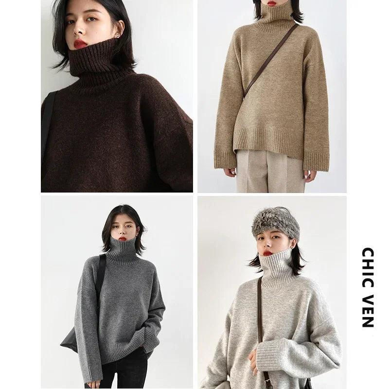 Cozy Mohair Turtleneck Sweater for Women Stylish Pullover