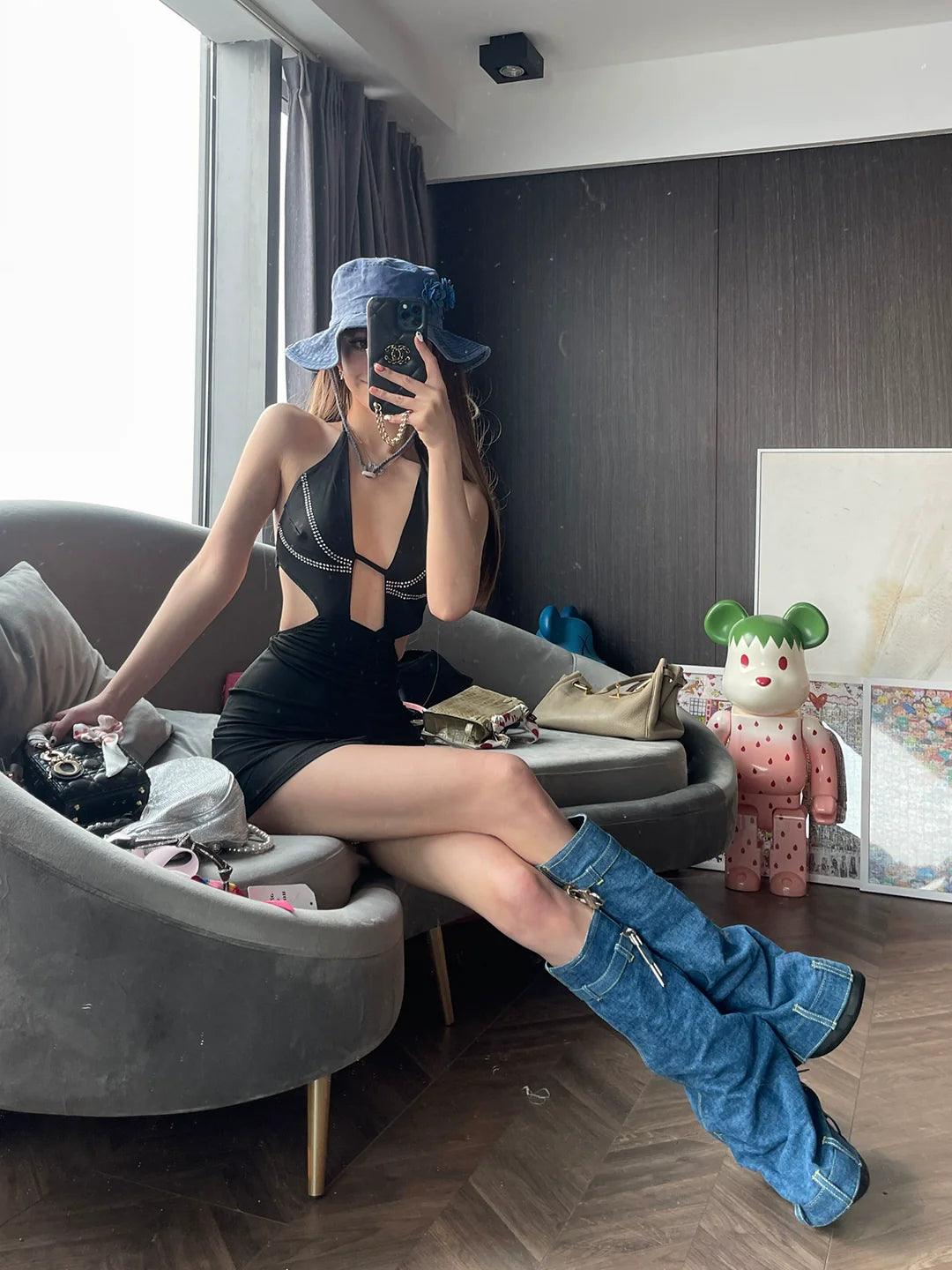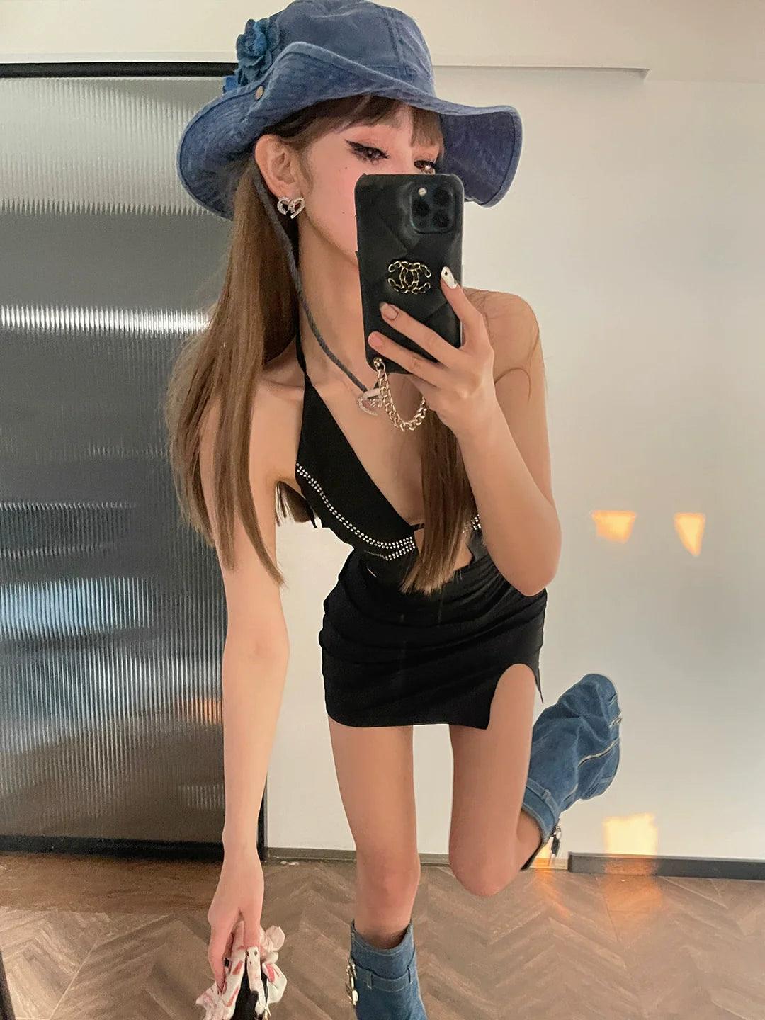 Chiclynana Gyaru Dress Trendy Backless Skirt High Waist