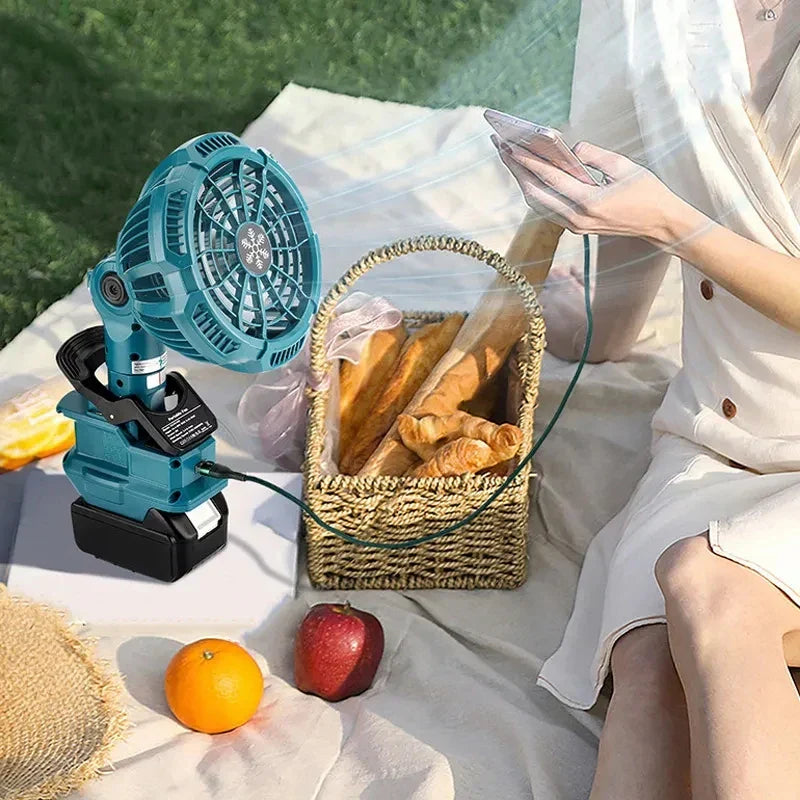 Beat the heat with our Portable Clip Fan for 18V Lithium Batteries USB Powered. This innovative fan is your ideal companion for outings, work, or relaxing at home!