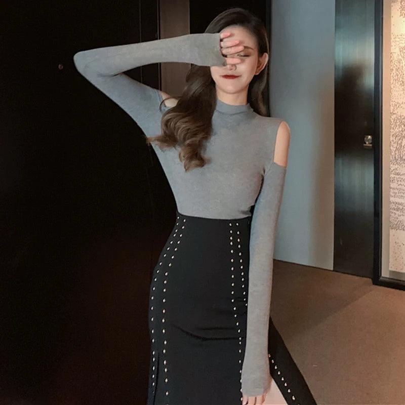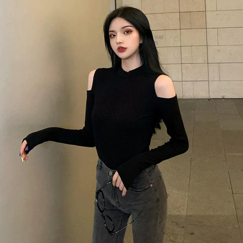 Elegant Korean Style Cold-Shoulder Blouse Autumn Chic Essential