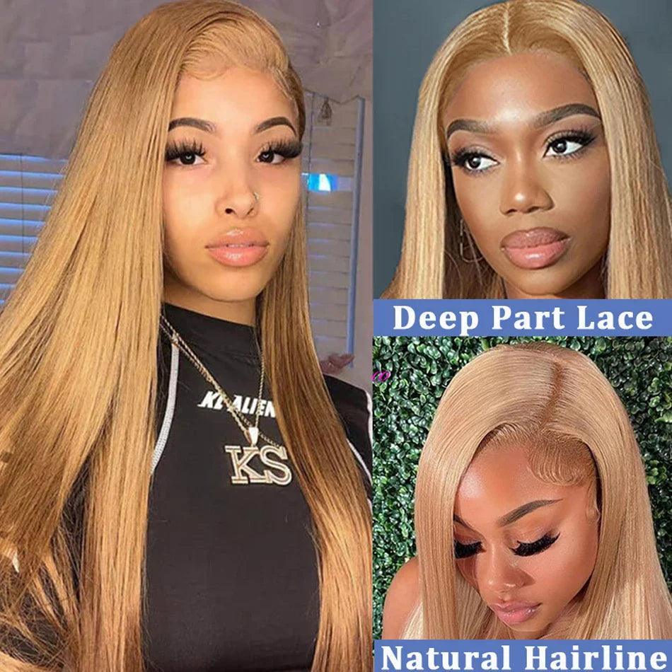 Order your #27 Honey Blonde Brazilian Straight Lace Front Wig 13X4 HD Lace today and redefine your beauty experience!