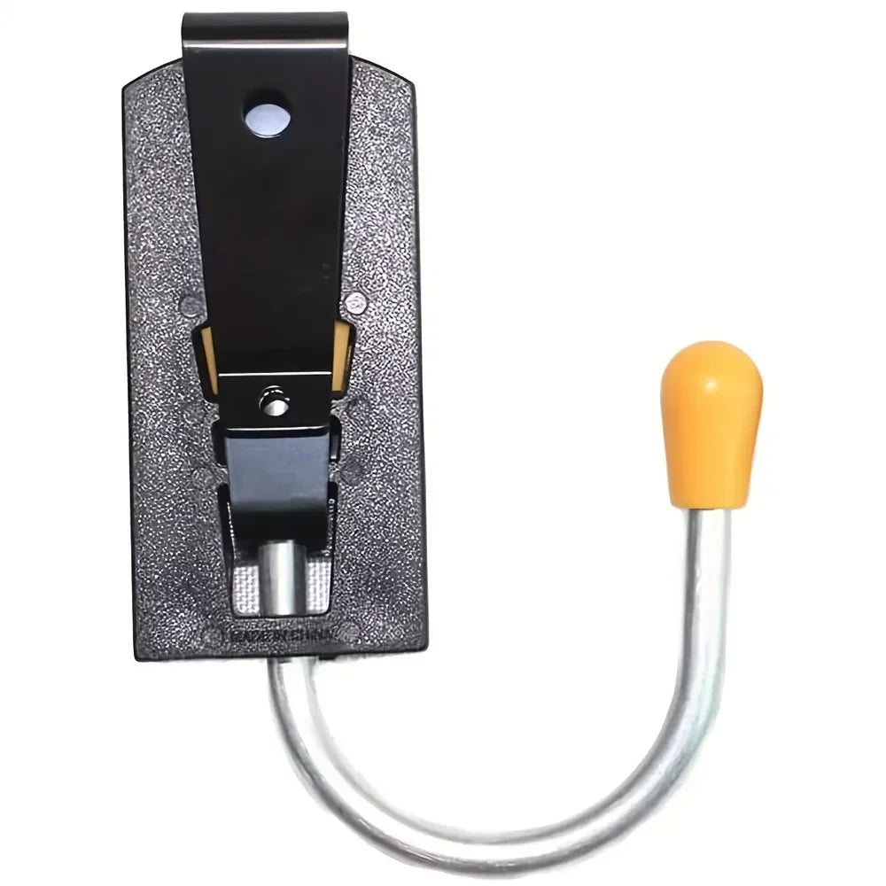 The Convenient Metal Electrician Tool Holder Hook Multitool is a durable metal and plastic holder that attaches to a tool belt or bag with a sturdy clip, keeping essential handheld tools within arm’s reach for electricians and handymen.