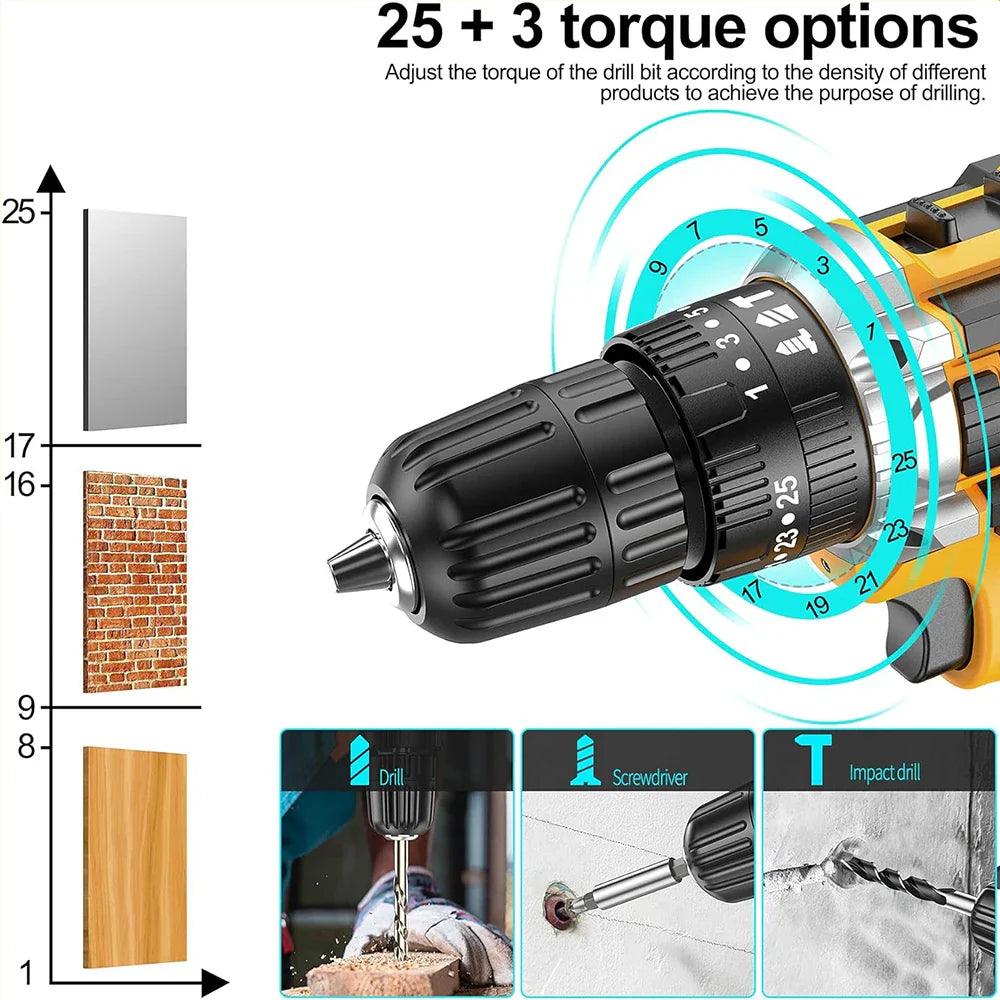 • Max Torque of 45Nm: Easily drill into tough surfaces like wood and metal.