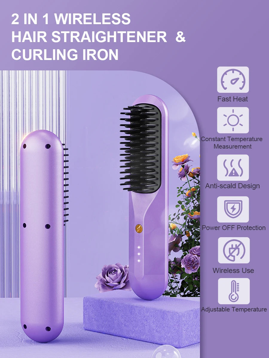 Transform your hair styling routine with our Cordless Electric Hair Brushes Straightener Brush Styler. This innovative tool combines the functionality of a heat comb and a straightener, making it the ideal choice for the modern woman on the move. Enjoy effortless styling with powerful performance, whether at home or while traveling!