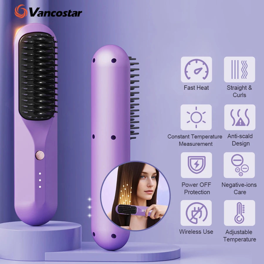 Cordless Electric Hair Brushes Straightener Brush Styler