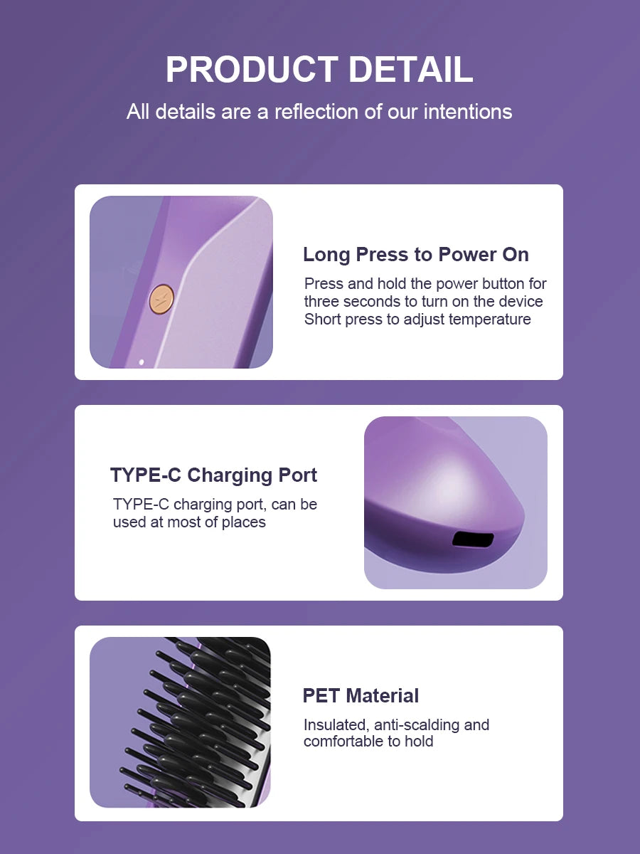 • Cordless Design: Experience the freedom of styling without tangled cords, perfect for quick touch-ups on the go. 1. Cordless Hair Brush