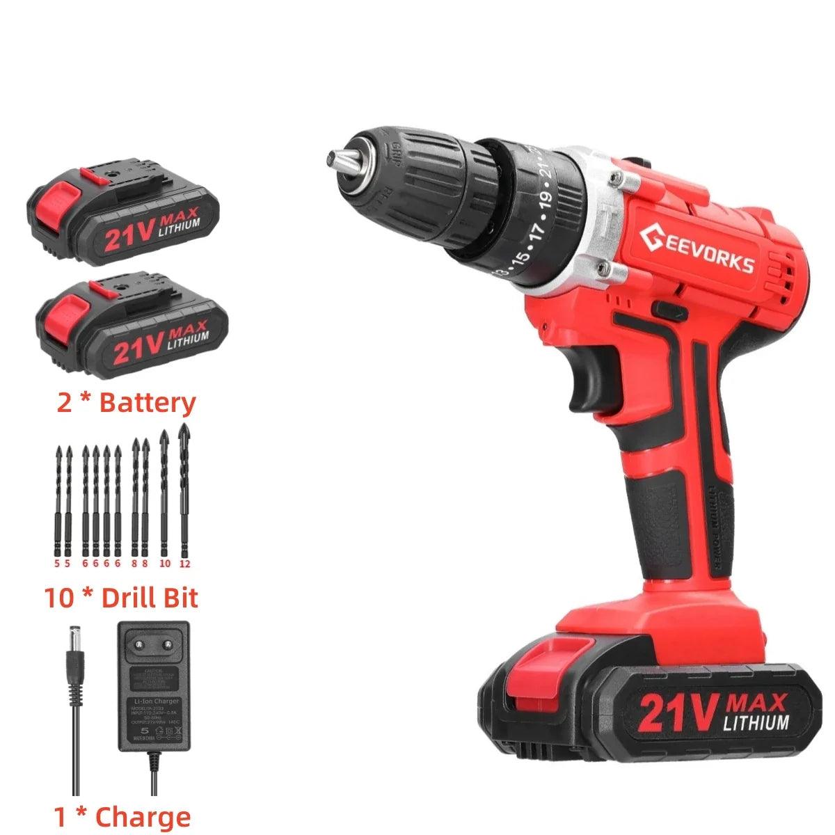 21V Cordless Impact Drill 3-in-1 Electric Screwdriver