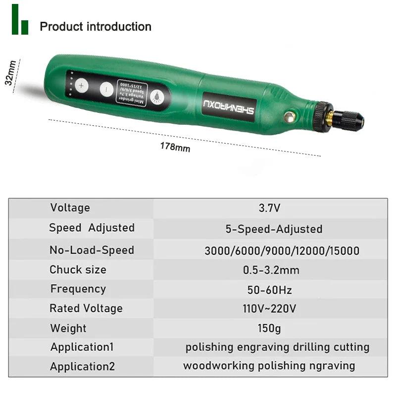Discover our range of 5-Speed Cordless Electric Engraving Tools, engraving accessories, DIY engraving tools, portable engraving tools, rotary engraving tools, electric engraving tools, adjustable speed engraving tools, crafting tools, woodworking engraving tools, and compact engraving tools.