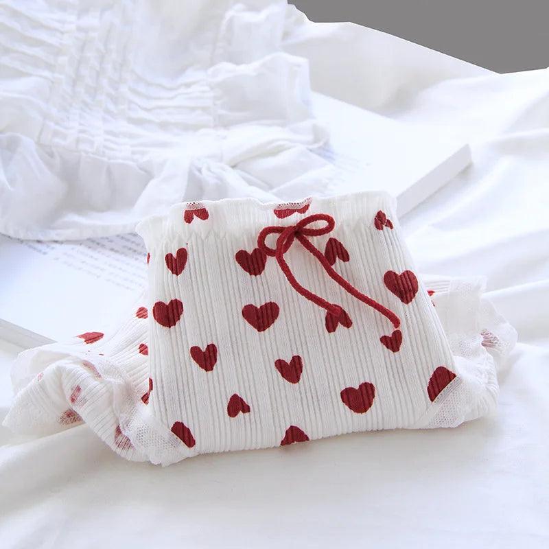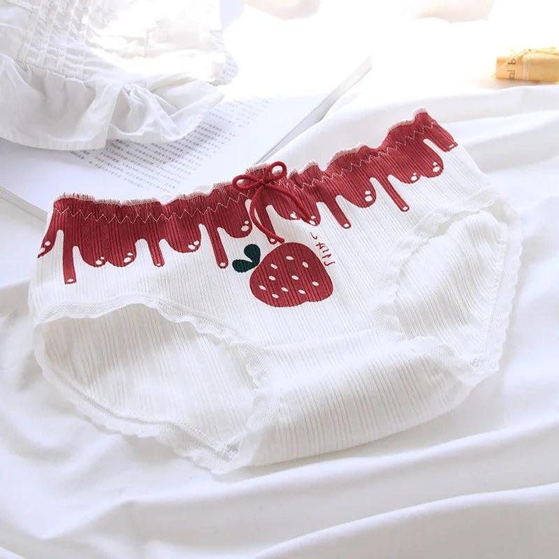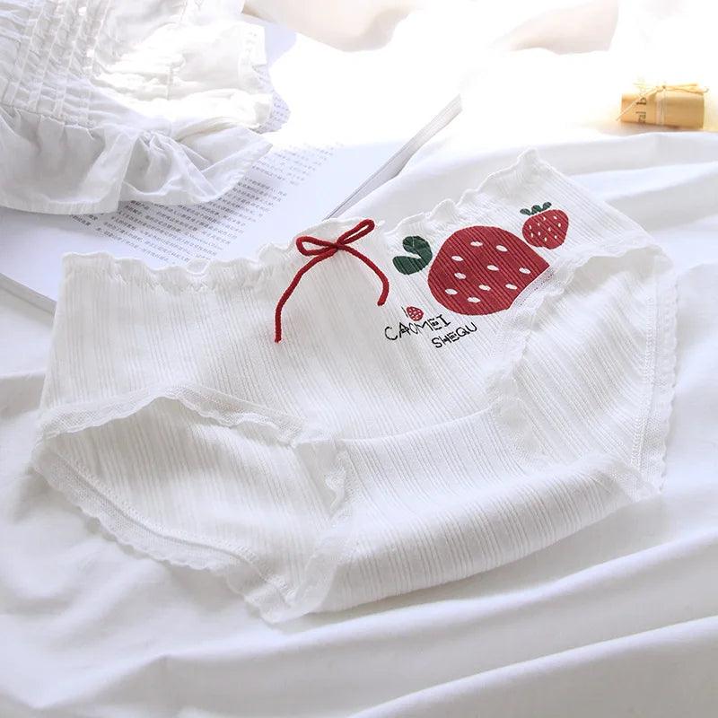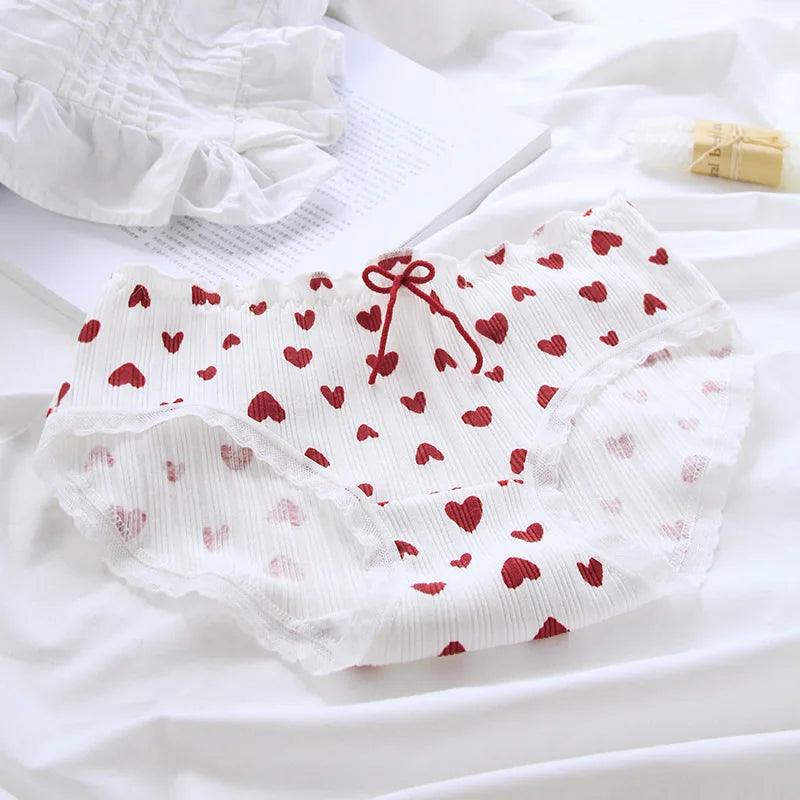 Strawberry Heart Lace Cotton Briefs Soft High-Rise Lingerie