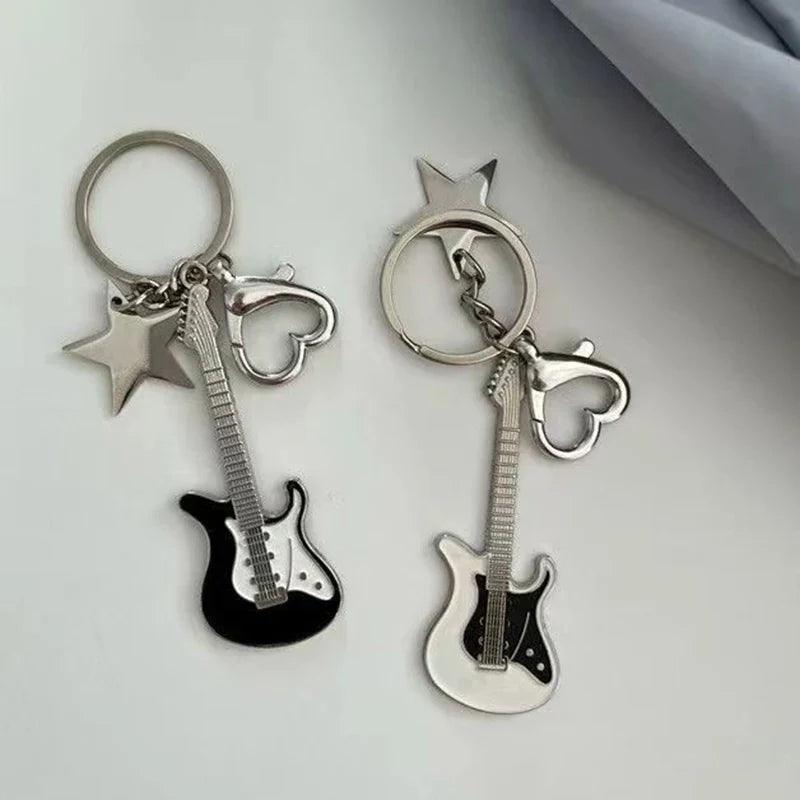 Whether you're heading to a casual outing or a night out on the town, the Guitar Keychain complements any look. Easily attach it to your car keys or use it as a stylish bag charm.