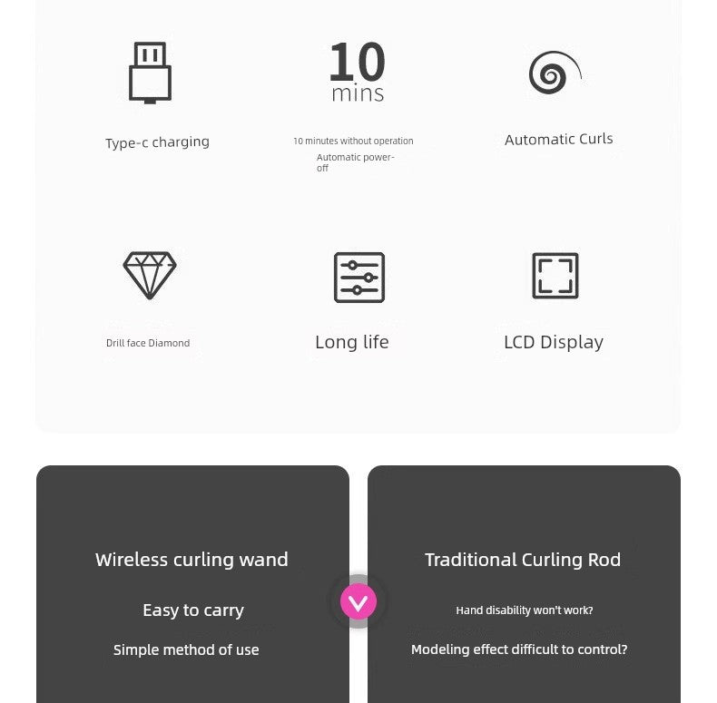 • Sleek & Stylish Design: The modern aesthetic of the 3. Wireless Automatic Curler makes it a chic accessory, elevating your beauty toolkit.