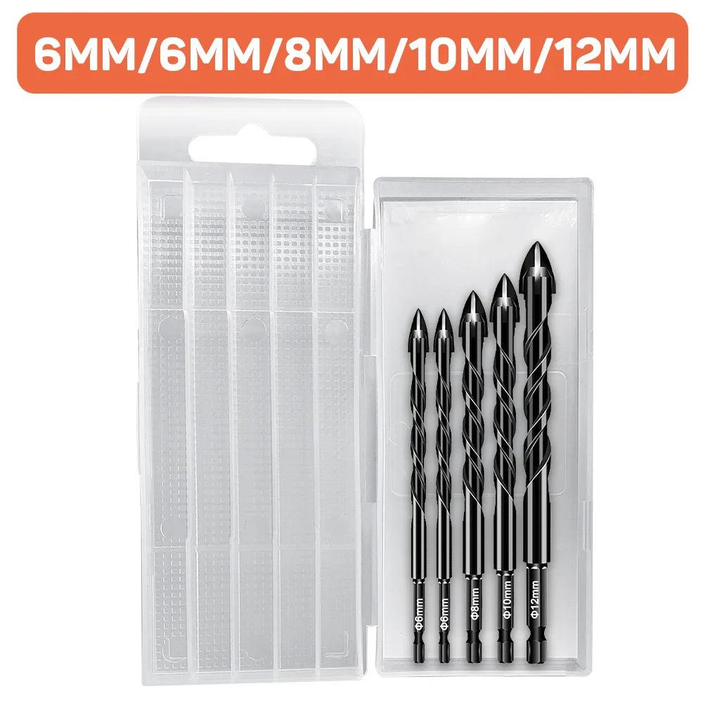 • 5 PCS x (6mm+6mm+8mm+10mm+12mm) Drill Bit with Transparent box