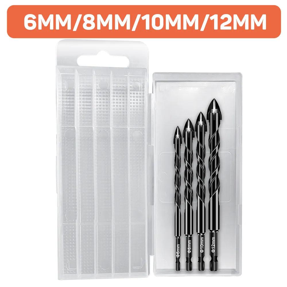 • 4 PCS x (6mm+8mm+10mm+12mm) Drill Bit with Transparent box