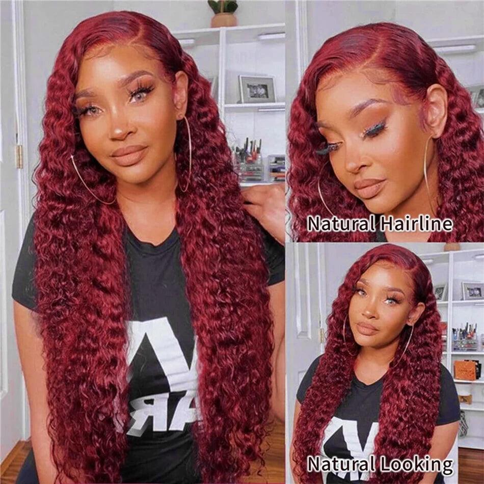 Burgundy 13x6 HD Lace Frontal Wig 99J Deep Wave Hair