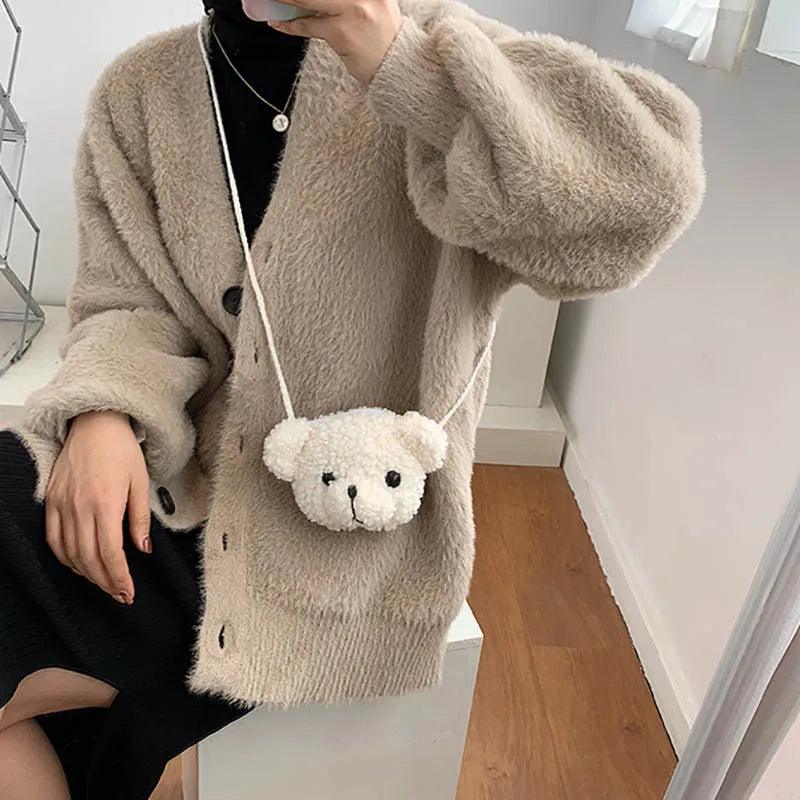 Cute Bear Plush Kids Messenger Bag Fun Cartoon Purse