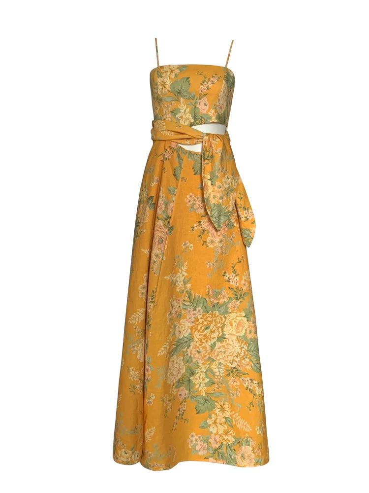Retro Yellow Floral Summer Beach Skirt Vintage Style Chic