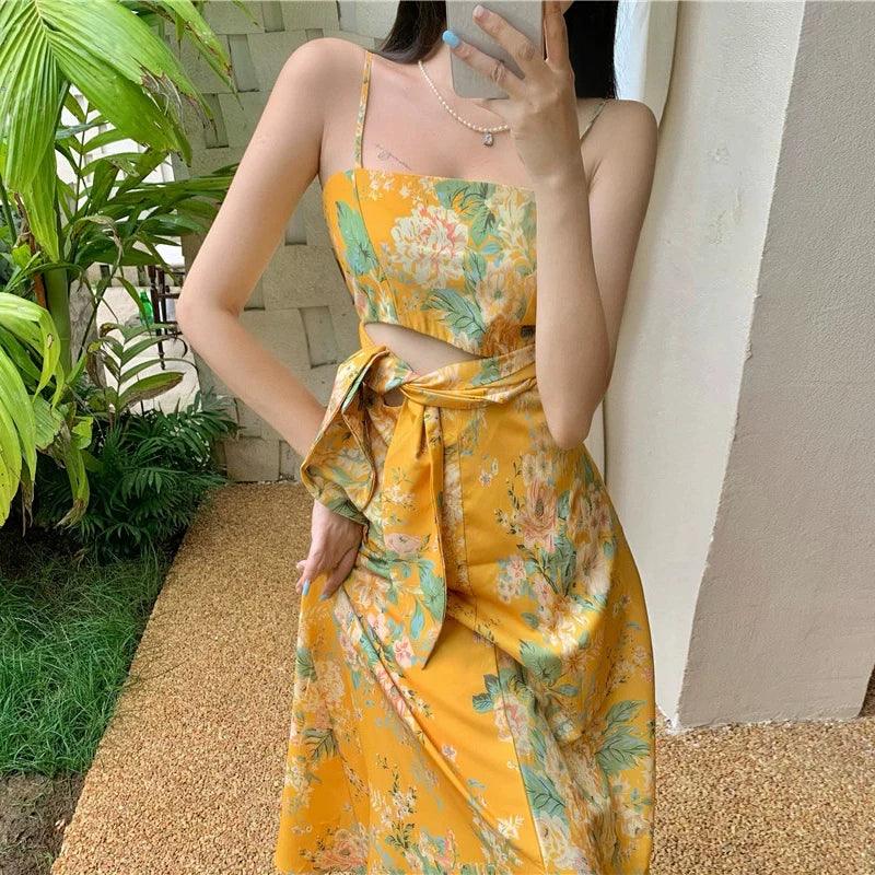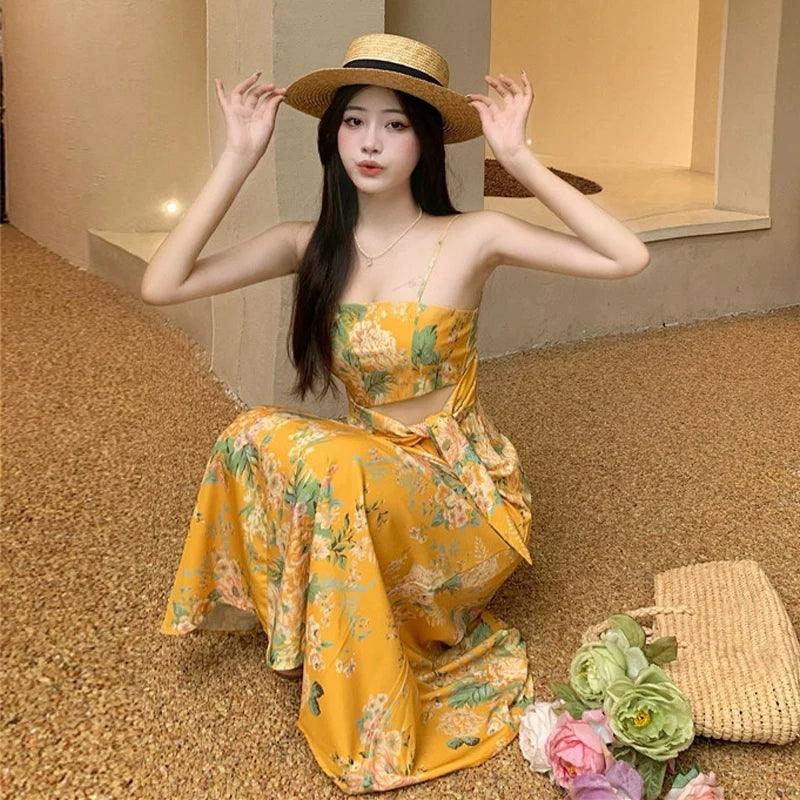 Step into summer with our Retro Yellow Floral Summer Beach Skirt Vintage Style Chic, a perfect fusion of vintage flair and contemporary chic. This stylish summer outfit is designed for those who love to stand out with elegance and ease.