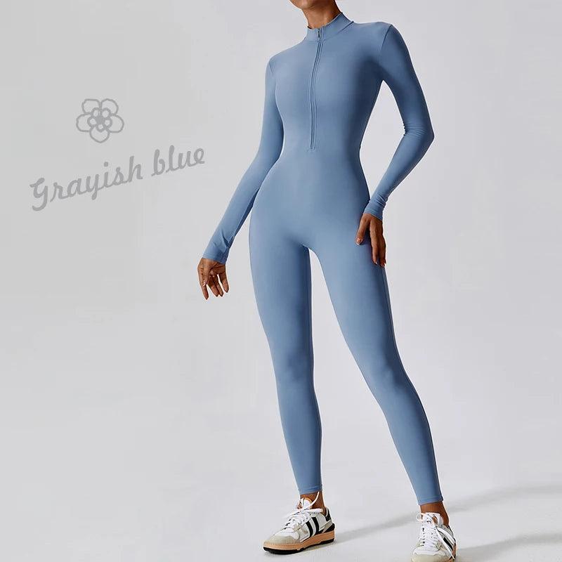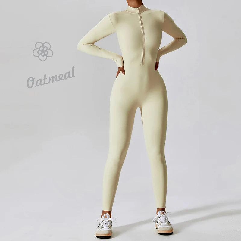 • Stylish Design: The elegant nude color and sophisticated zipper detail make this jumpsuit a standout piece for any fitness enthusiast.