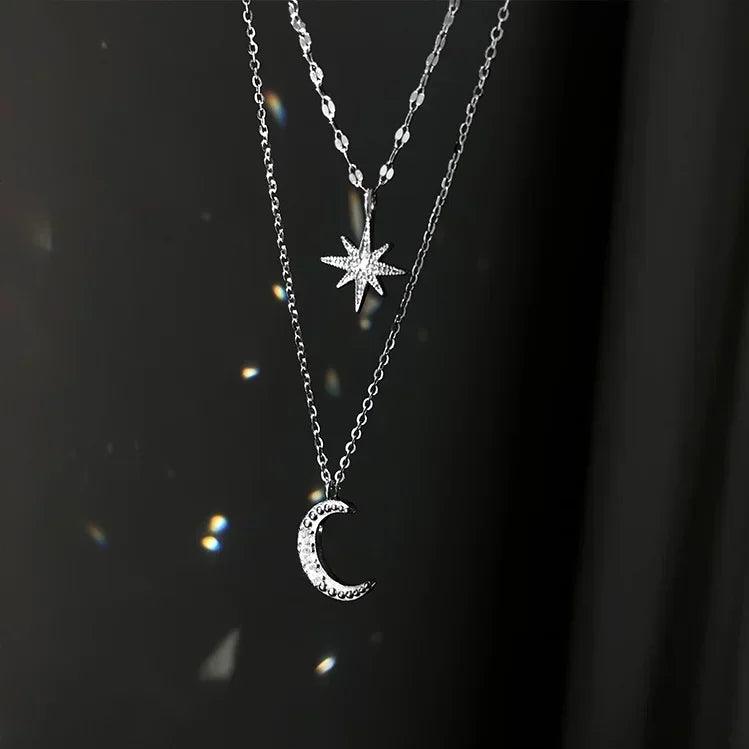 Elegant Star Moon Double Layer Necklace Chic Women's Fashion