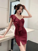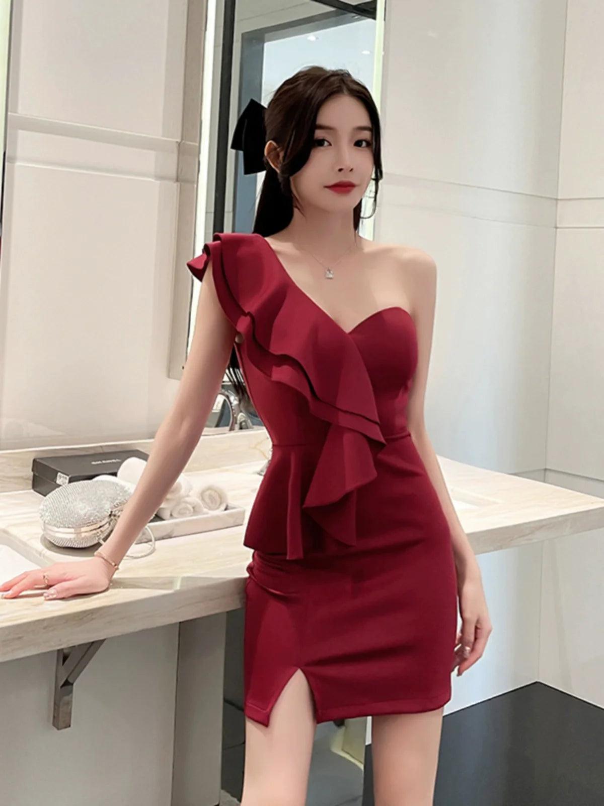 Introducing the Korean V-Neck Summer Dress Irregular Sexy Style Elegance, the ultimate addition to your summer wardrobe. This stunning dress features an irregular cut that not only enhances your fashion-forward appeal but also offers a unique style that is hard to resist.