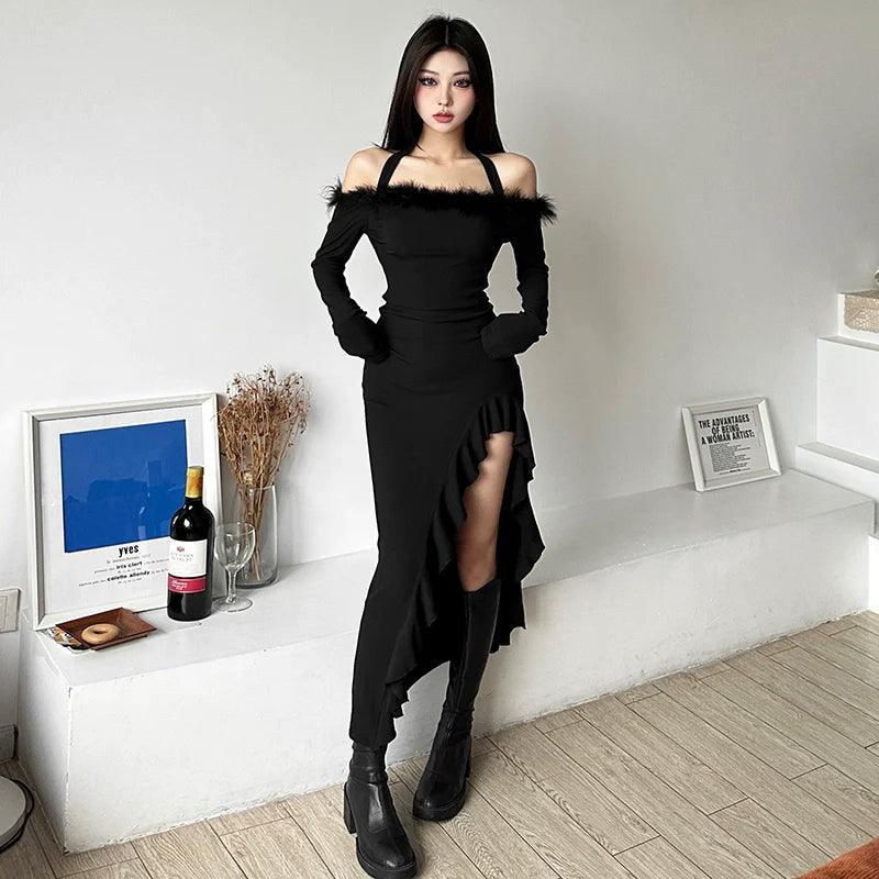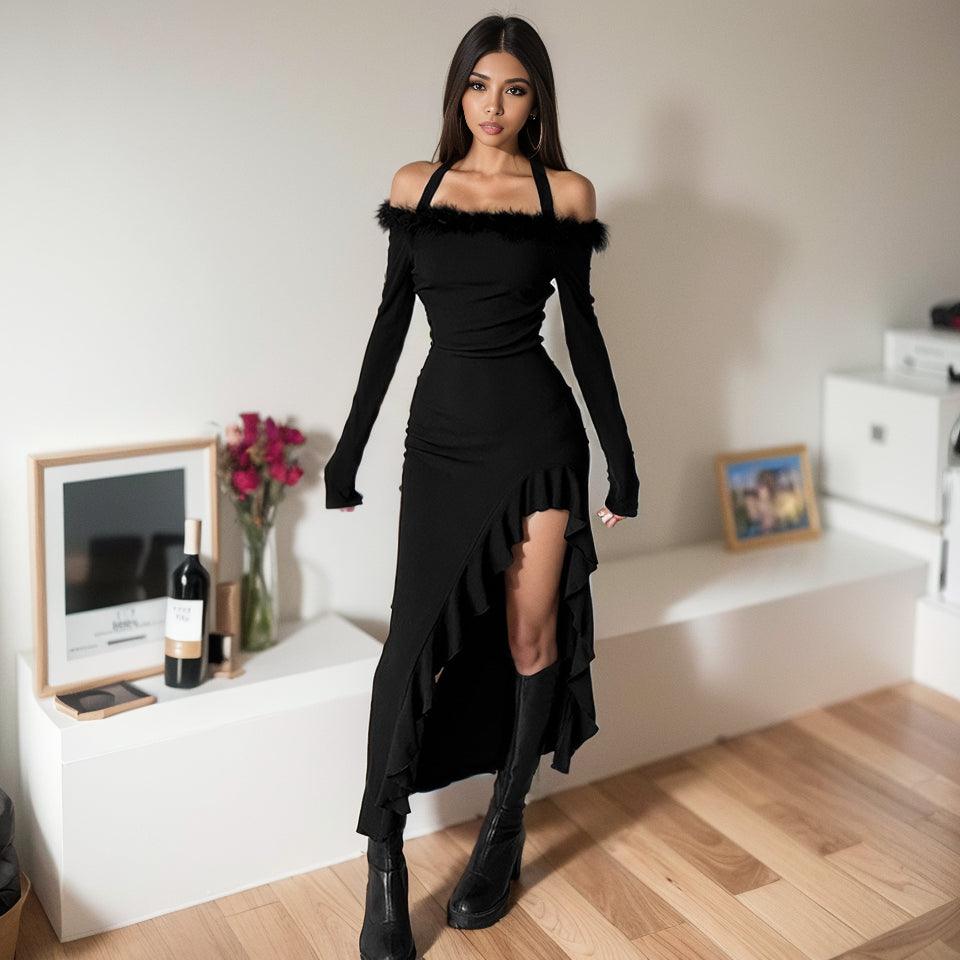 Stylish Stuffed Dress: Unique Word Collar Modern Elegance