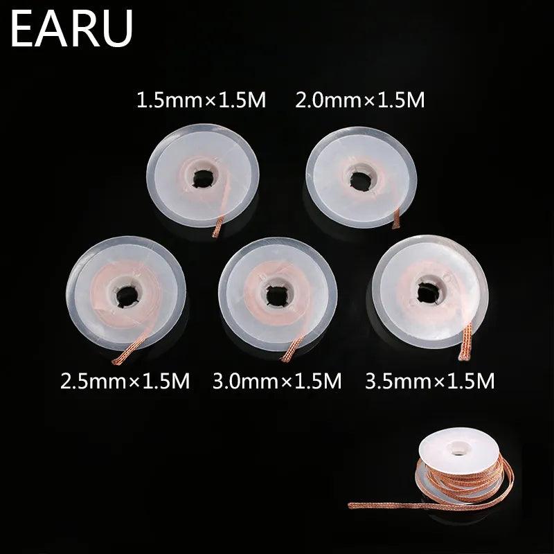 Enhance your soldering experience with the Desoldering Braid Wick Solder Remover Cord Flux Repair Tool. Perfect for both professionals and DIY enthusiasts, this tool boasts a length of 1.5M and offers multiple widths: 1.5mm, 2mm, 2.5mm, 3mm, and 3.5mm, ensuring you have the right fit for every task.