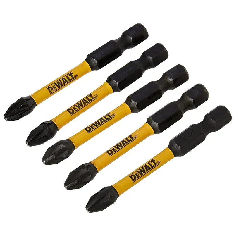 Dewalt PH2 57mm Bits Set 5 Pcs High Speed Steel Pack delivers durable, precise PH2 engagement for electricians and DIYers. With 57mm reach, Flexi-Torsion to reduce tip load, redesigned geometry for T20–T40 fasteners, 1/4" hex shank compatibility, laser-etched IDs, and longer life for demanding tasks.