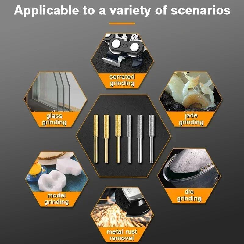 Introducing the Diamond Coated Chainsaw Sharpener Burr Set Precision Kit, the essential tool for anyone looking to enhance the performance of their chainsaws, drill bits, and more. Whether you're a woodworking enthusiast or a professional, this high-performance kit ensures your tools are always in optimal condition.