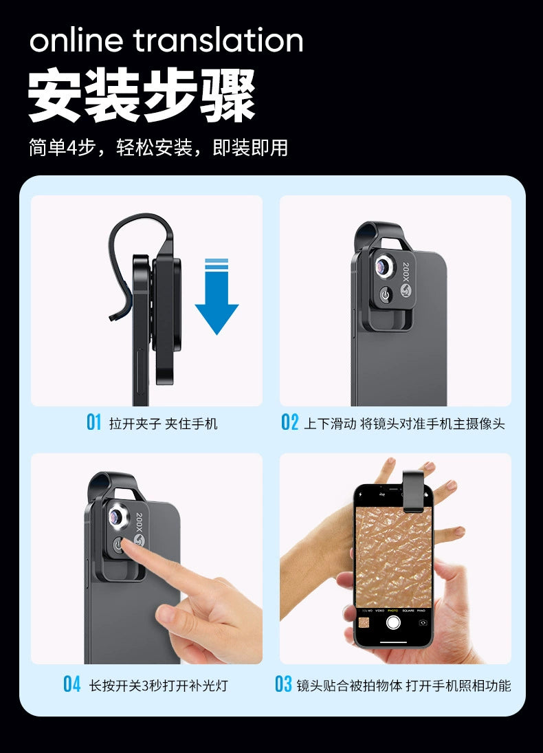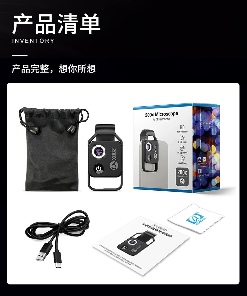 Key Features of the Diamond Magnifying Glass Watch Cell Phone Microscope 200x
