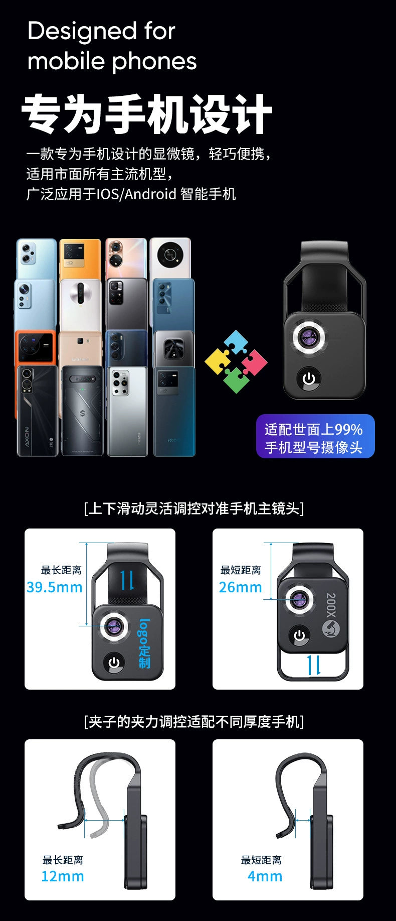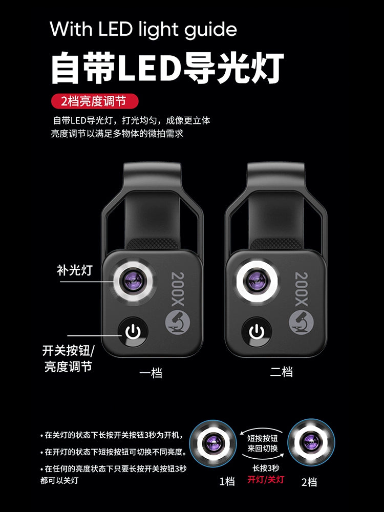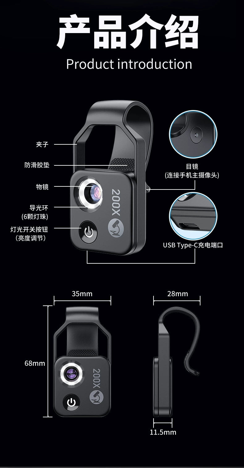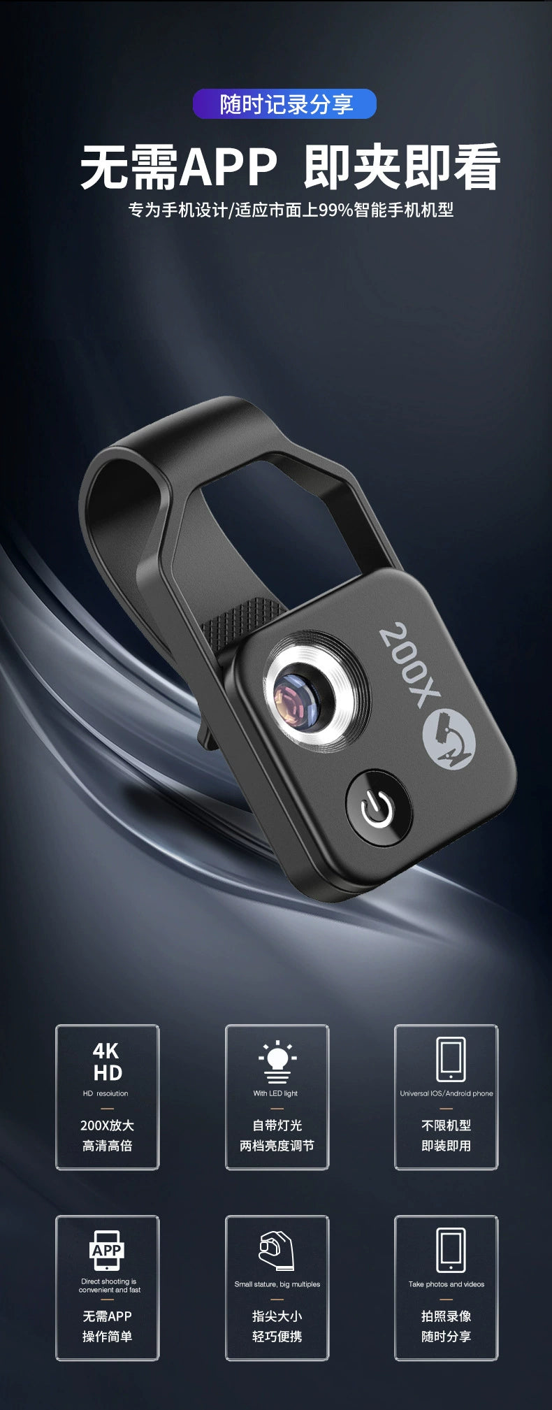 Microscope Lens LED Light Clip-On Micro Lens for Most Smartphones Cellphone