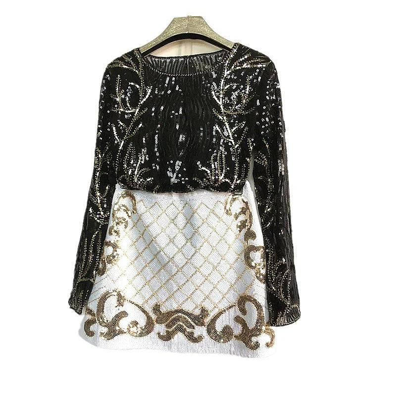 Dinner Party Chic: Black Gold Two-Piece Set For Glam Style