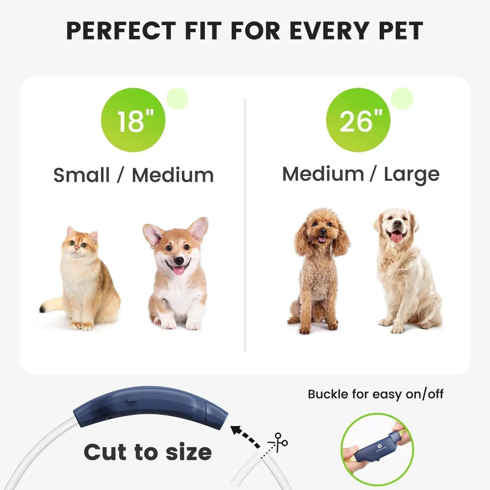 • Adjustable Size: Perfect for pets of all sizes, the collar offers a customizable fit for comfort and security.