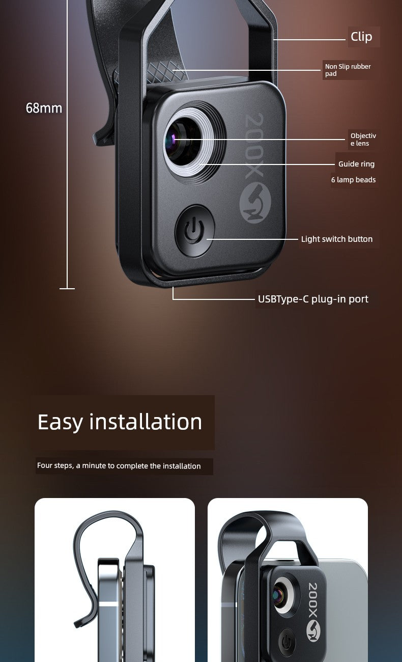 Microscope Lens LED Light Clip-On Micro Lens for Most Smartphones Cellphone