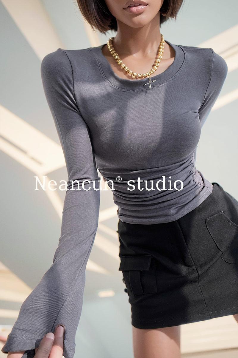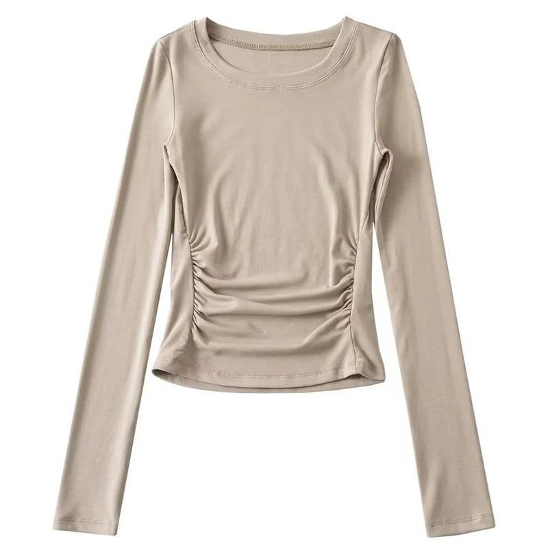 Discover the perfect blend of style and comfort with the Ruched Long Sleeve Street-Style Tee Double-Sided Chic Top. Your wardrobe transformation starts here!