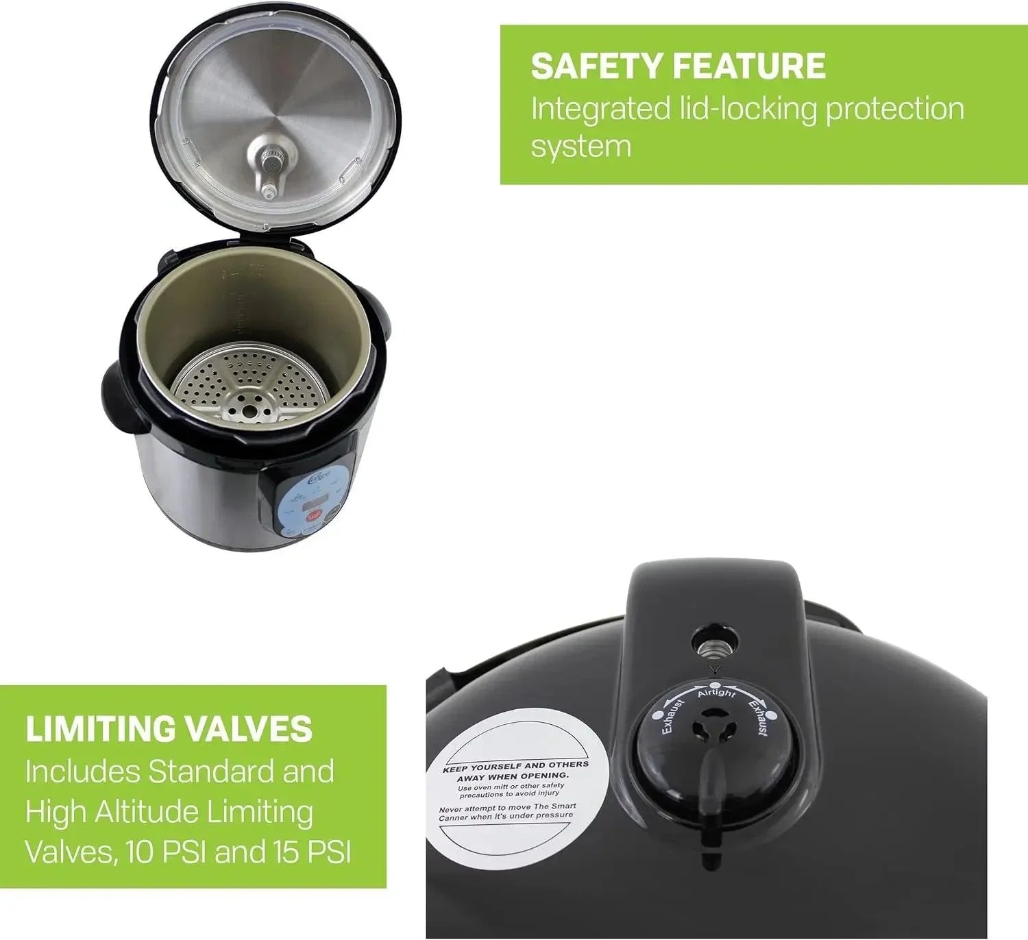 Smart Electric Pressure Cooker Canner DPC 9SS Quart delivers fast meals and reliable canning in one versatile unit. With 9.5 Qt capacity, it handles pressure cooking and water bath canning for jams, vegetables, and preserves. Safety-first design, user-friendly digital controls, and easy-clean, dishwasher-safe parts.