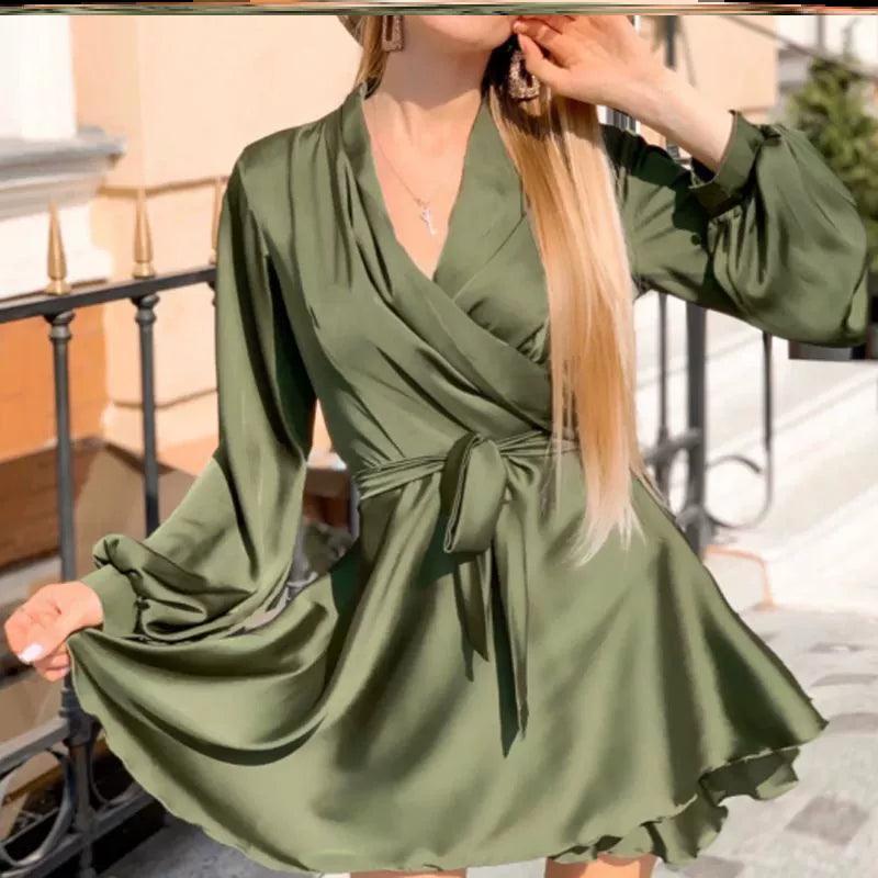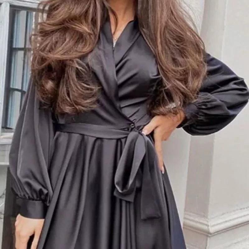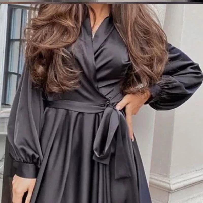 Discover more amazing products like this at Long Sleeves Dress, V Neck Dress, Solid Color Dress, A Line Dress, Dress with Belt, Chic Dresses, Women Dresses, Spring Dresses, Fashion Dresses, and Elegant Dresses.
