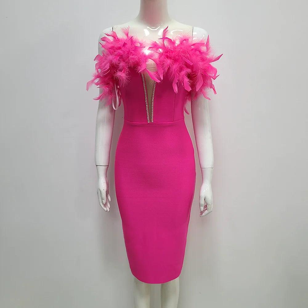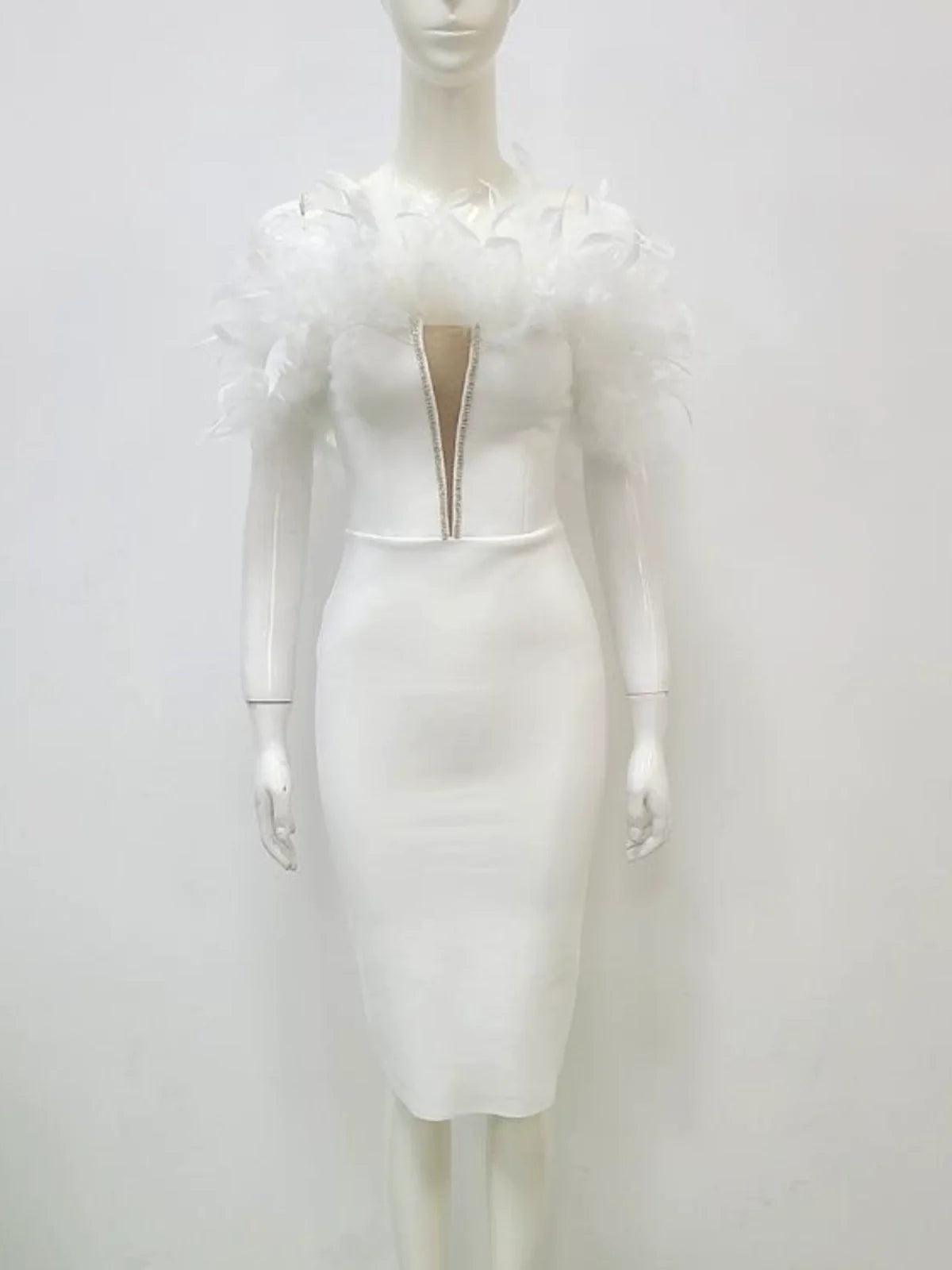 • Flattering Bandage Design: The innovative bandage style beautifully accentuates your curves, creating a silhouette of confidence and sophistication.