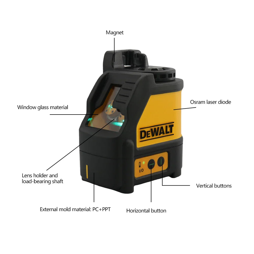 Whether you're leveling cabinets, aligning wall frames, or laying tiles, the DW088CG Laser Level With Case 30m Self-Leveling Tool guarantees precision and efficiency in every project. With unmatched accuracy and ease of use, this laser level is a must-have for your toolkit.