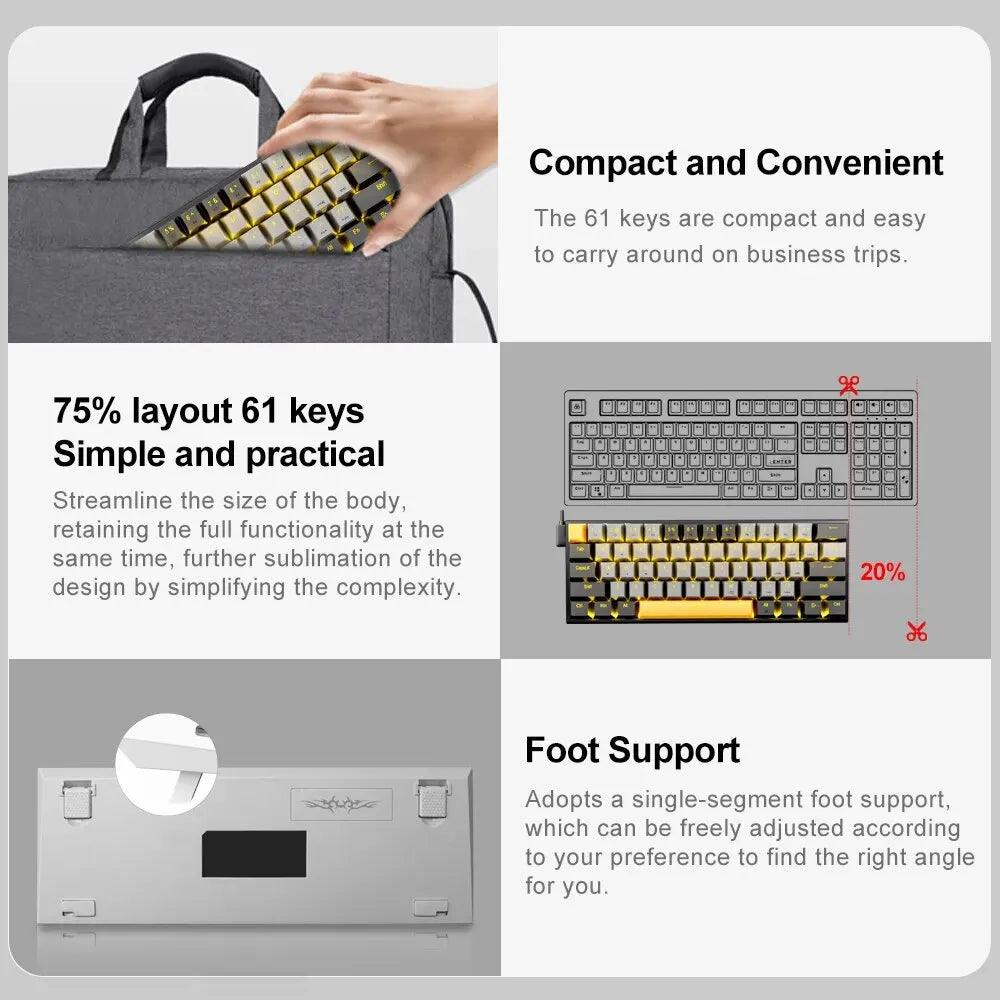 • Compact 61 Keys: Its efficient layout provides ample space for both typing and gaming, enabling smooth maneuverability.