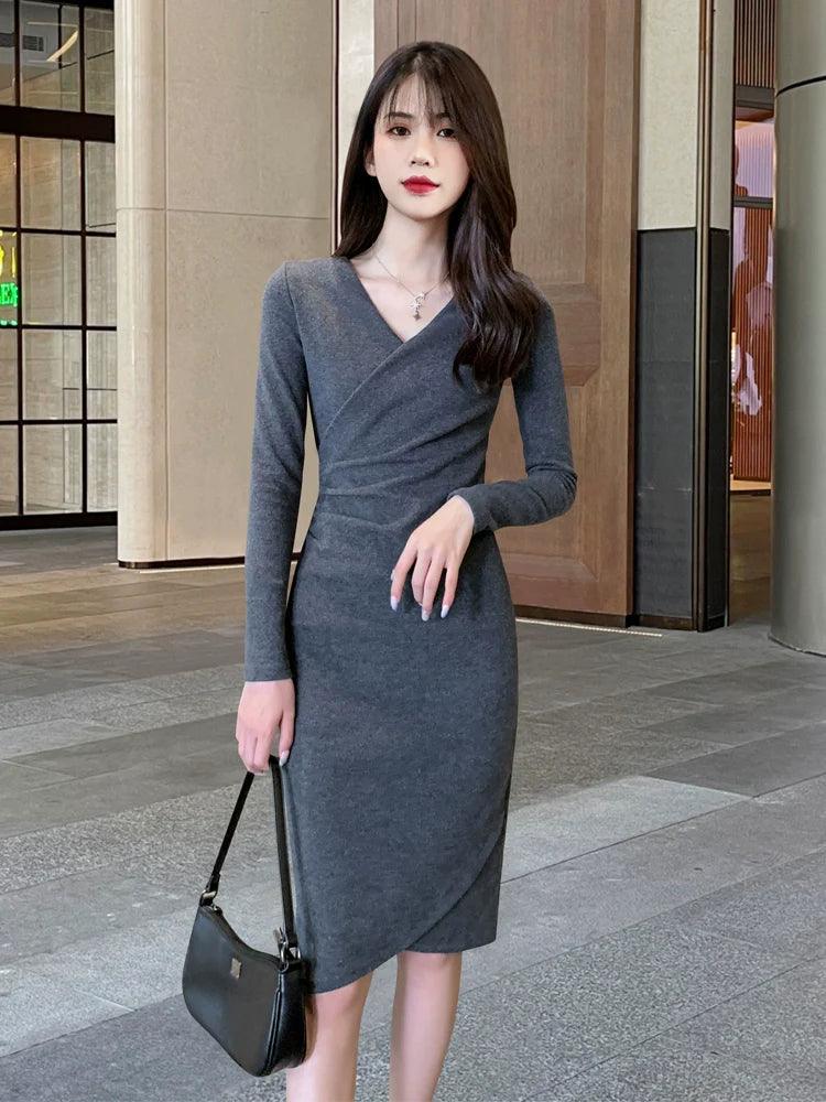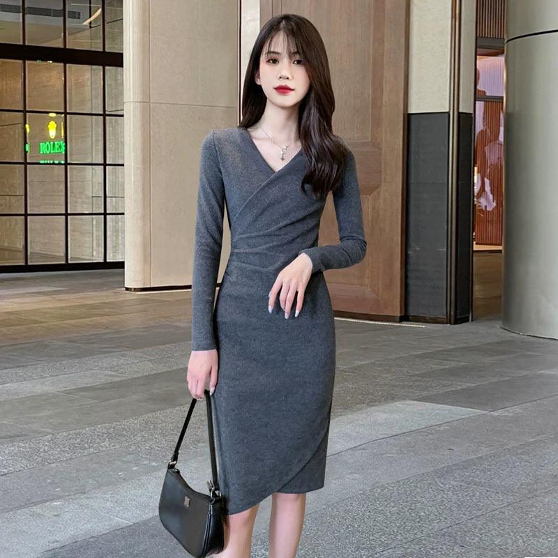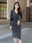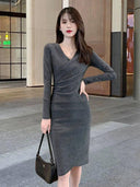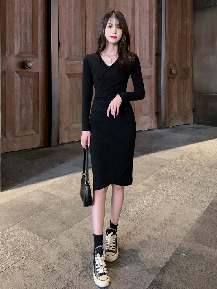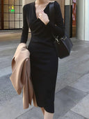 Get Yours Today! Don't miss out on the chance to own this stunning piece. Order now and elevate your wardrobe with the Early Spring Black Slimming Knit Dress Chic Versatile Choice!