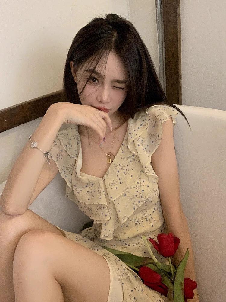 Spring Blossom French Waist Floral Dress for Stylish Comfort