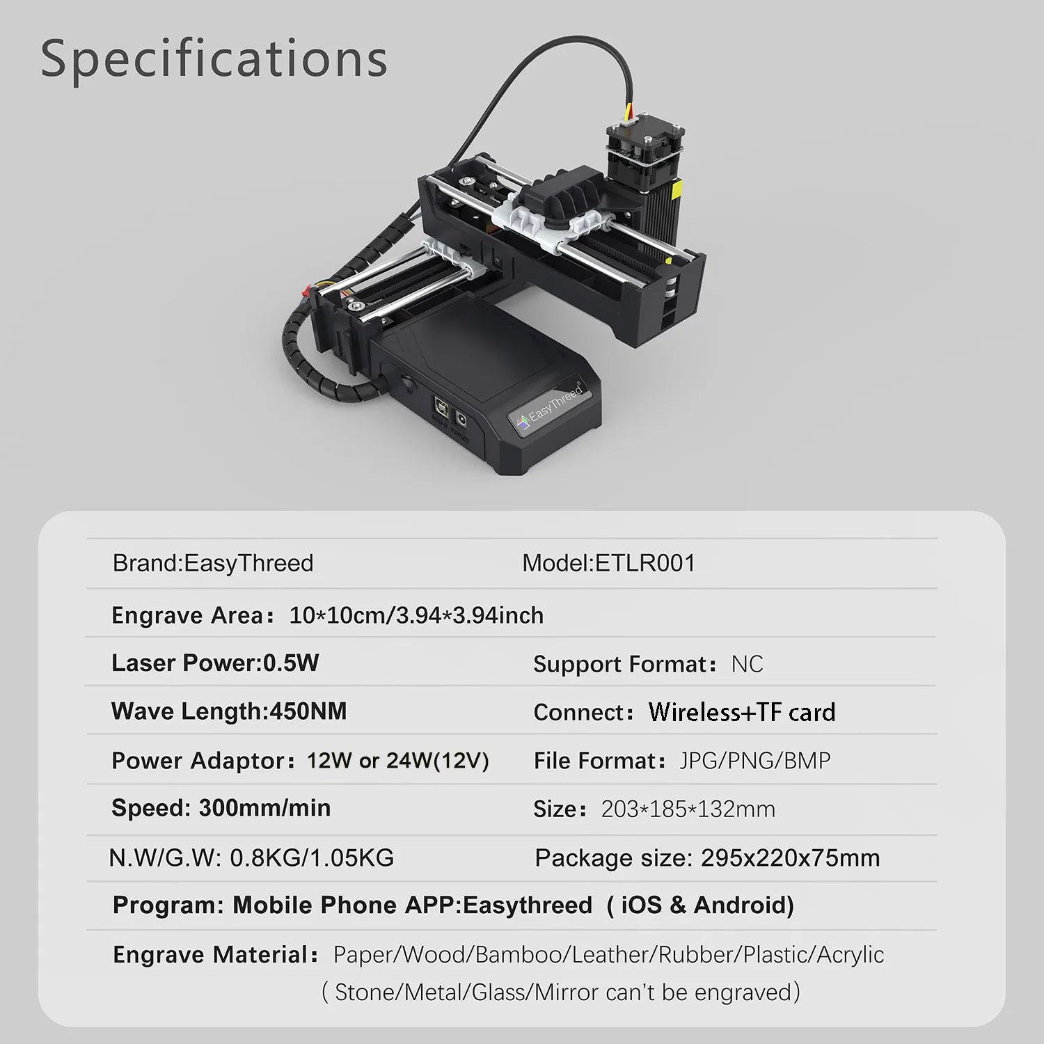 Discover endless possibilities with the EasyThreed Laser Engraver 0.5W Entry Level DIY Tool Kit. This beginner-friendly tool is expertly crafted for anyone eager to explore the exciting world of DIY engraving.