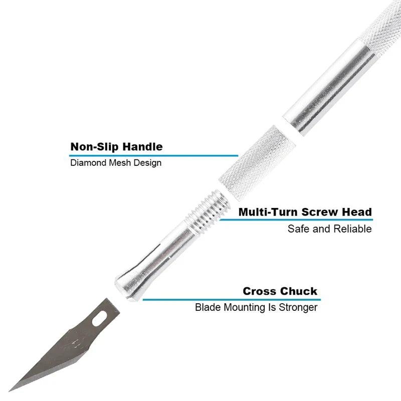 Discover the ultimate Engraving Knife Set with Non-Slip Handle & Craft Blades, crafted for precision and versatility in all your crafting needs. This professional-grade set promises exceptional performance with its sharp stainless steel blades, making it the perfect choice for intricate tasks ranging from mobile phone repairs to detailed engraving projects.