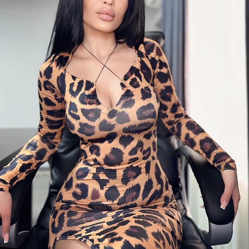 Leopard Print Sheath Dress: Street-Style Fashion Icon for Autumn/Winter